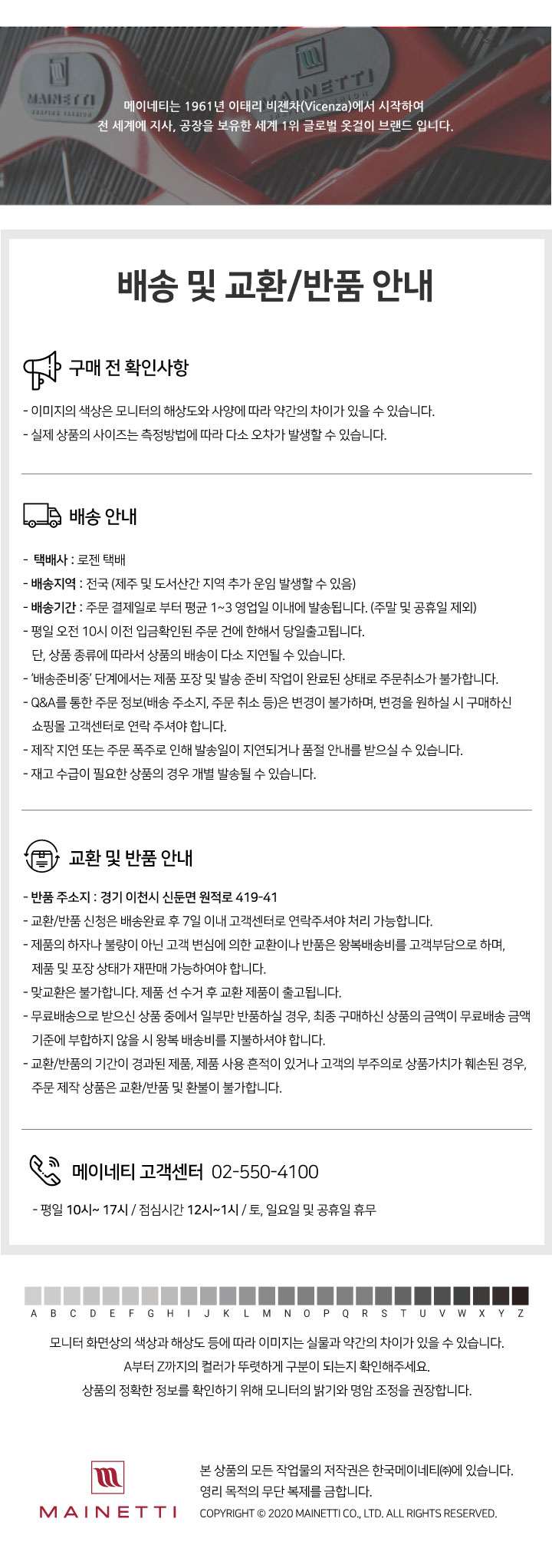 주소 : 05520 서울 송파구 올림픽로 587-1, 4층 ㅣ 대표번호 02-550-4100ㅣFax 02-552-1831 ㅣ 이메일 ecommerce.korea@mainetti.com